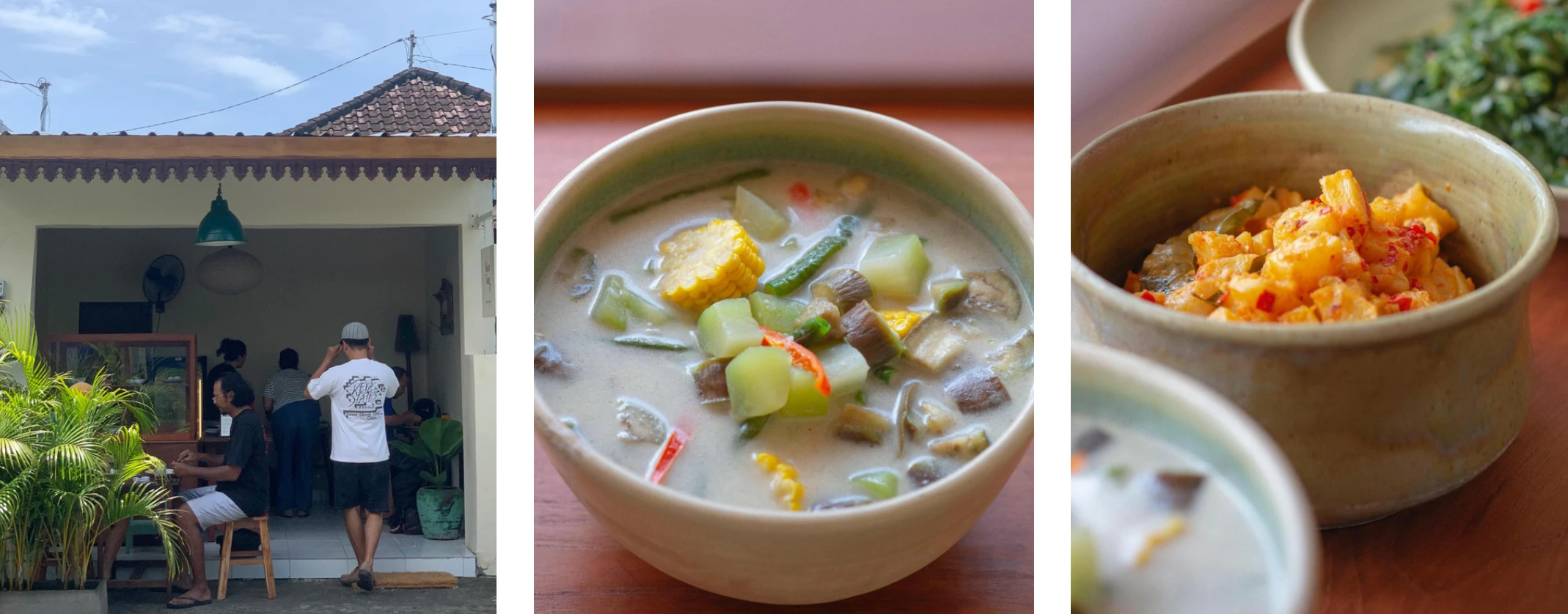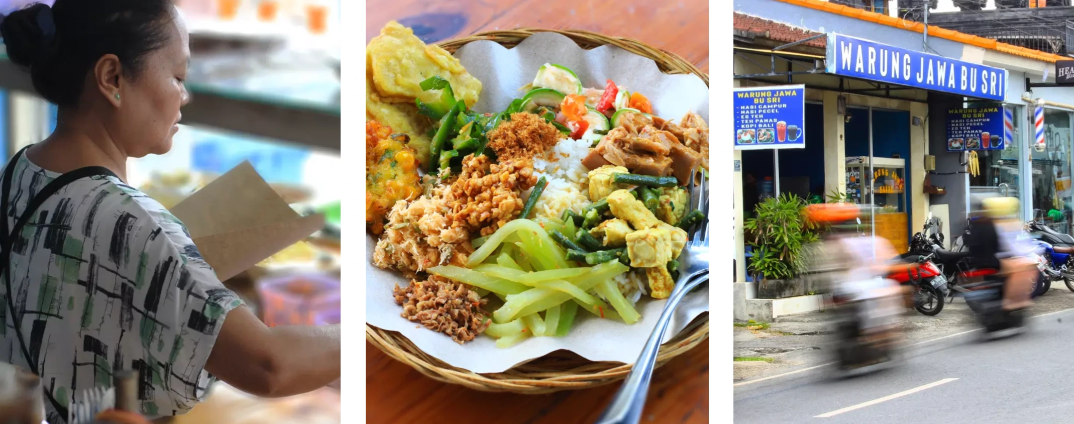 You’ll find proper local dishes like pecel (steamed veggies with peanut sauce), ayam suwir balado (shredded chilli chicken), and Javanese-style rendang. Sri is the name of the super lovely lady who owns and runs the warung.
