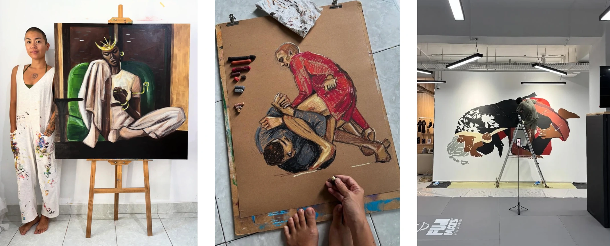 Bunny works on her personal project Bunny Bone – a collection of reflections about herself, women, and Indonesia’s culture and people, which she deeply loves. The works are mostly acrylic paintings for now. More recently, she’s also been developing Bunny Jitsu, a jiu jitsu-inspired art project featuring digital art, oil pastel drawings, and merchandise.So if you’re looking for acrylic projects or jiu jitsu-inspired commission work, from merchandise to murals, she’s your girl.