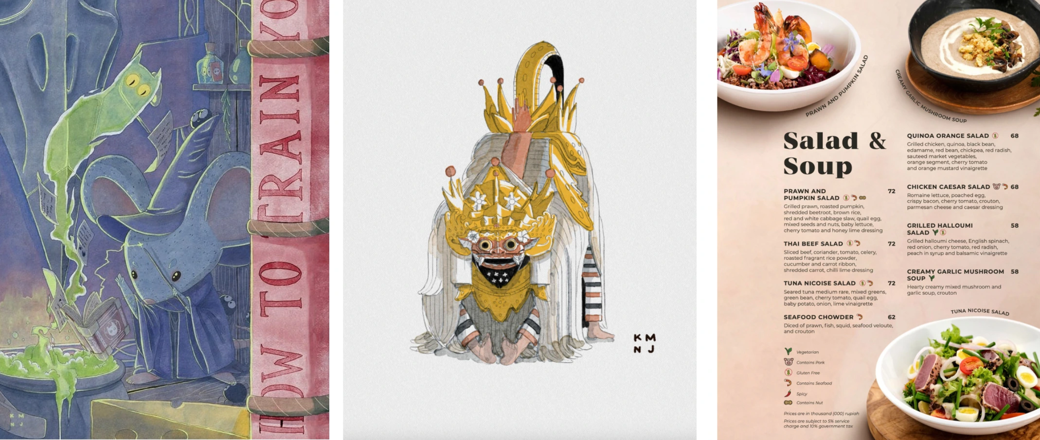 Their main work is illustration, known for a soft watercolour style, but they can actually adapt to all kinds of visual directions- from cute and playful to clean and corporate. They also handle brand kits if you’re starting a business, photography, motion graphics, promotional materials, menu design, product design, and more. Basically, whatever style or creative support you need, Kumonjia delivers.